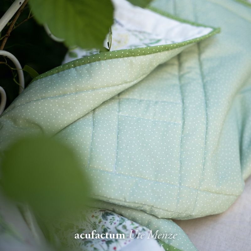 Einlaufen beim Waschen: | Die Baumwollstoffe können naturgemäß bis zu 5 % einlaufen. Deshalb empfiehlt Acufactum die Stoffe vor dem Vernähen (besonders in Kombination mit anderen Materialien) zu waschen. Im Trockner können die Stoffe zusätzlich einlaufen, ein hoher Schleudergang beansprucht den Stoff zusätzlich. |