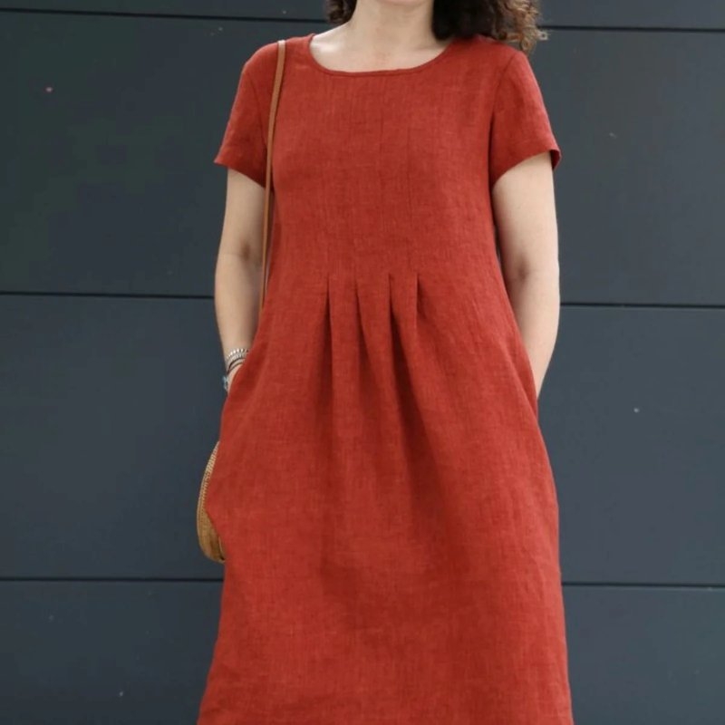 Das Milenda Kleid ist ein einfaches und zeitloses Pull-On-Kleid mit kurzen Ärmeln und den wichtigen Seitentaschen. In der Vorder- und Rückseite eingestickte Falten laufen in den Rock über und schaffen zusätzlichen Schwung.