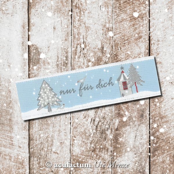 Dieses winterliche hübsche Webetikett lässt sich ganz einfach, dank der praktischen Endfalten, auf jedes beliebige Nähkunstwerk aufnähen. Motiv: Kerstin Heß