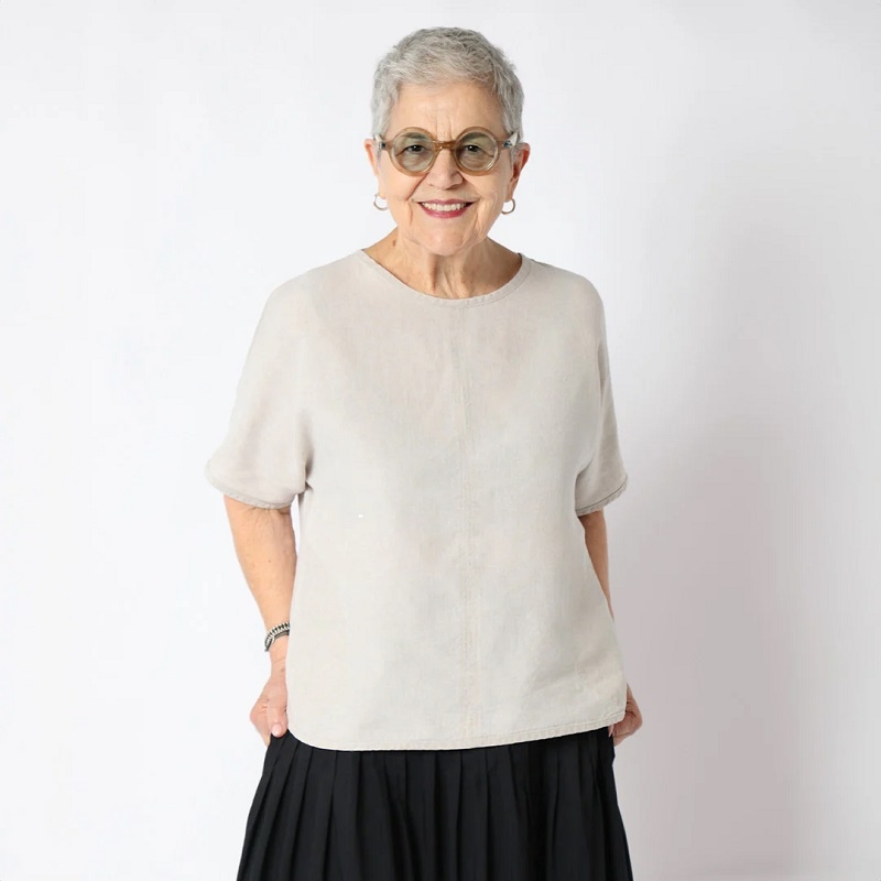 Das Cora Top-Muster ist ein süßer und schlichter Stil mit einer abgesteppten Vordernaht in der Mitte und abgesteppten Innennahttaschen. Eine freiliegende Einfassung rundet den Rundhalsausschnitt ab, die kurzen, angewachsenen Ärmel und der geschwungene Saum. Pull-On und Hüftlänge - der Rücken ist etwas länger als die Vorderseite - es ist einfach zu passen, zu nähen und zu stylen, was es zum perfekten Kleidungsstück macht, das mit Röcken, Hosen, Jeans und Shorts kombiniert werden kann.
